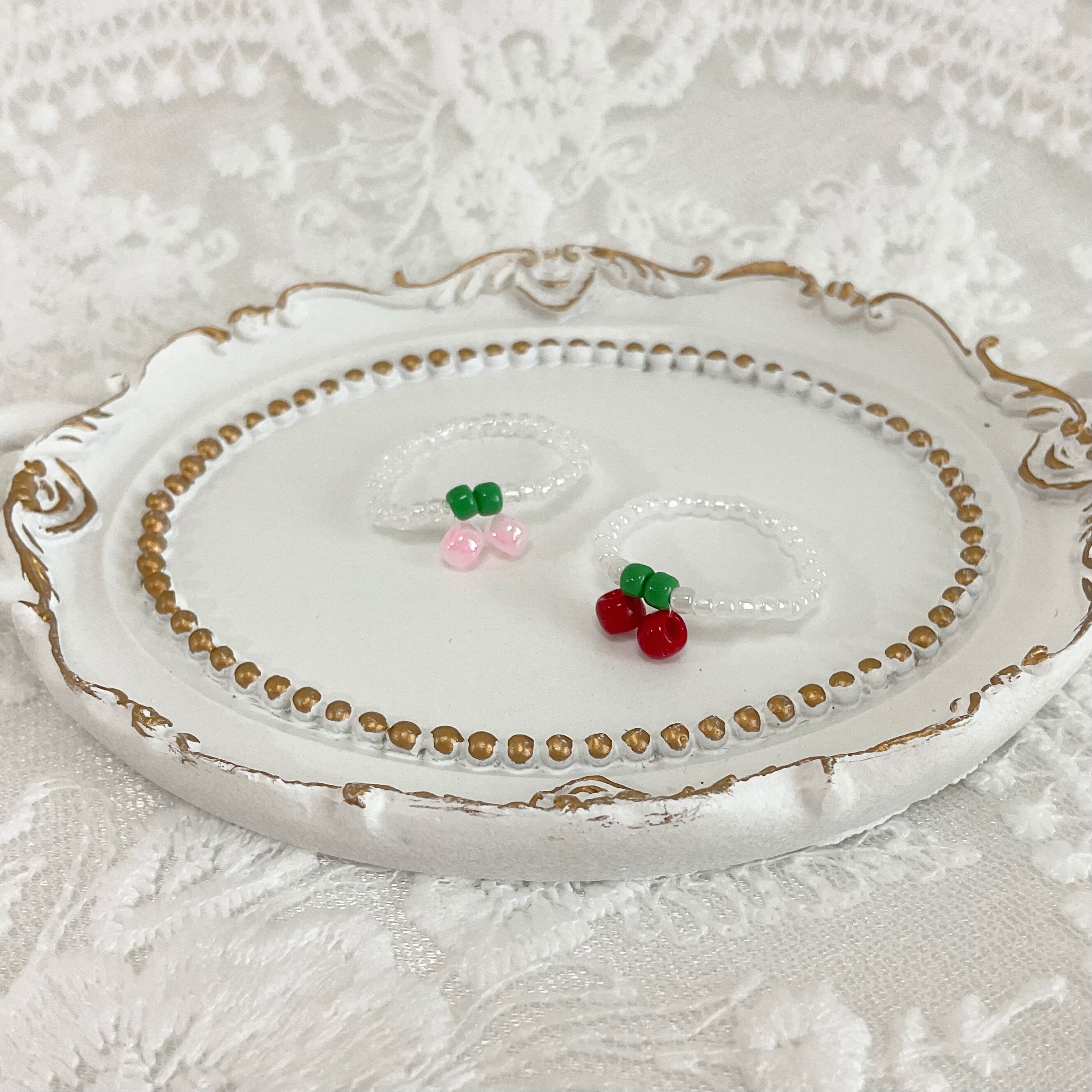 ビーズをさくらんぼに見立てた指輪です。