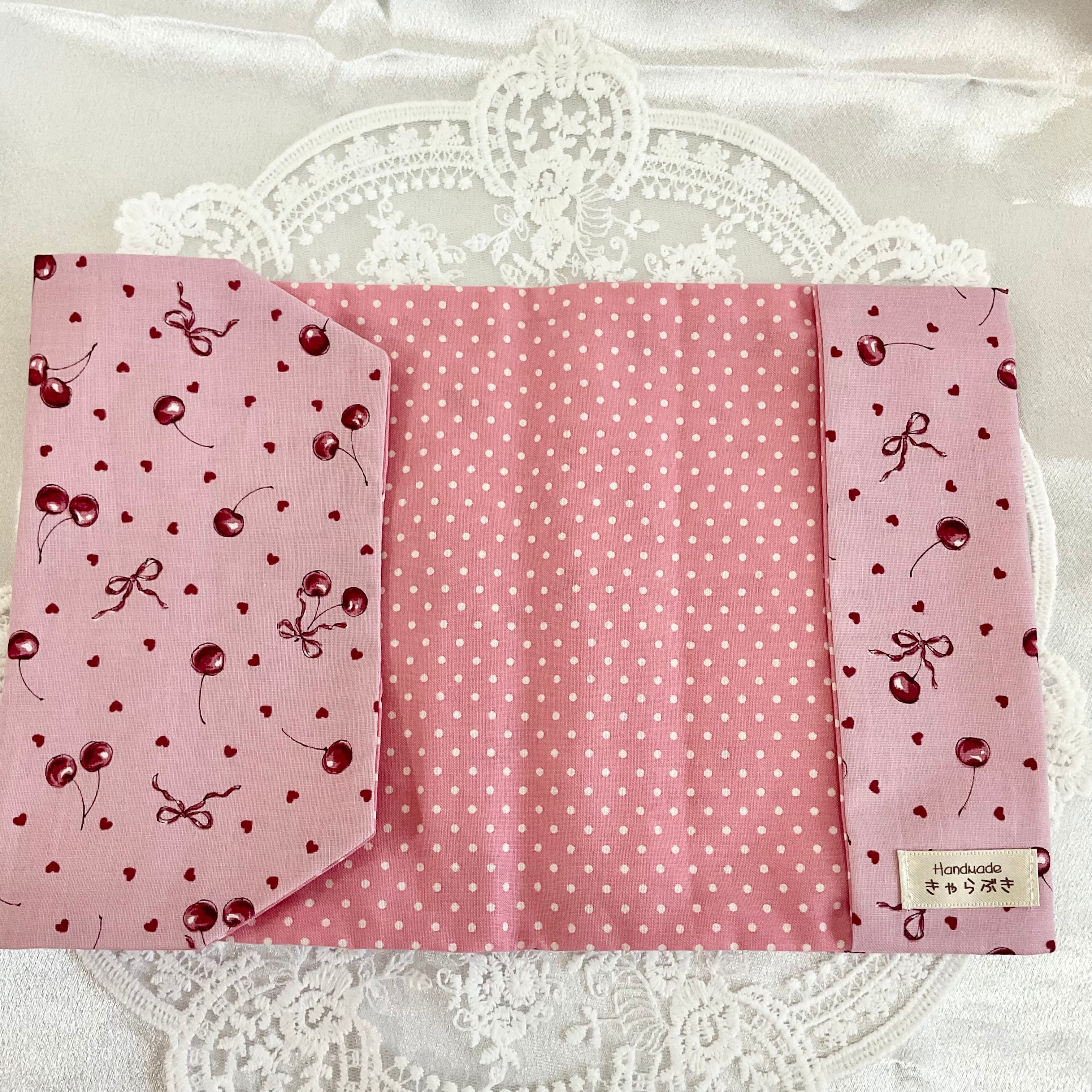 ブックカバー 大人ガーリーなさくらんぼ ピンク(大)単行本