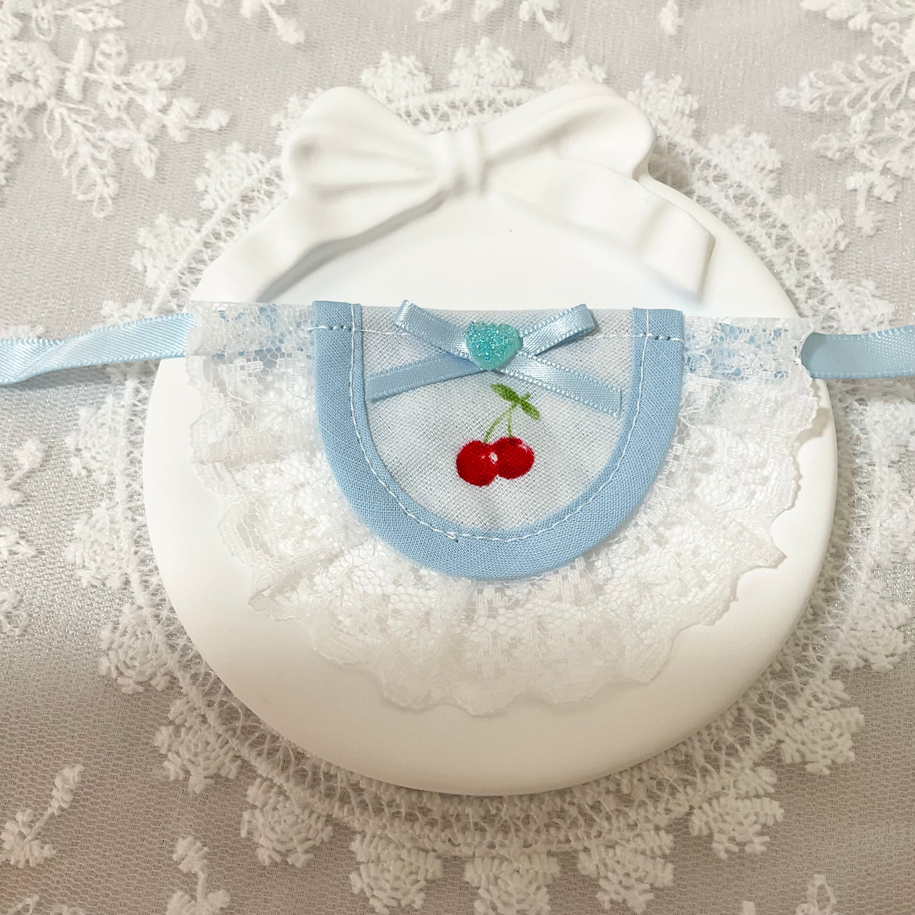 ぬいぐるみ用スタイ さくらんぼ 水色 リボン