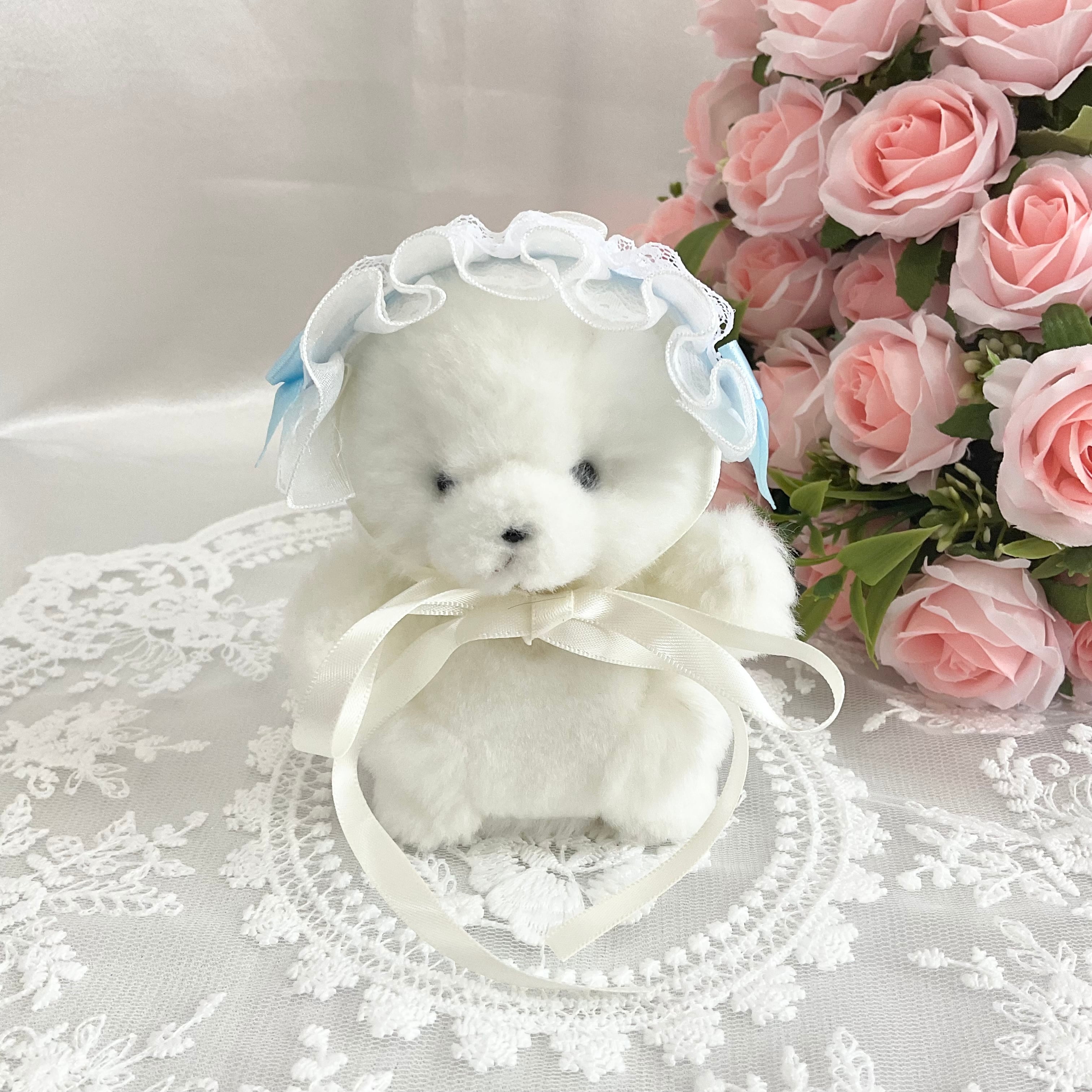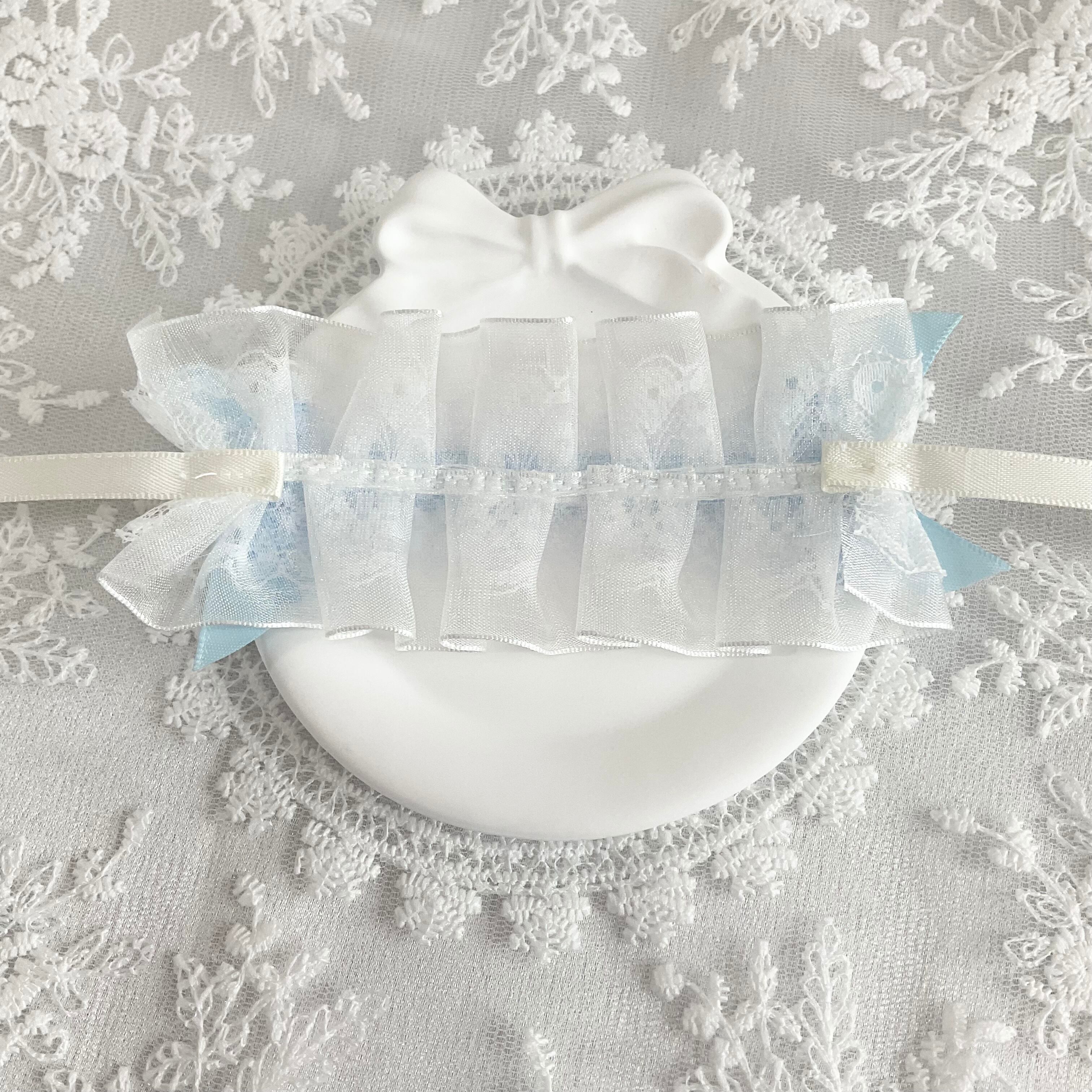 ぬいぐるみ用ヘッドドレス シンプル ホワイト×水色 水色リボン Sサイズ