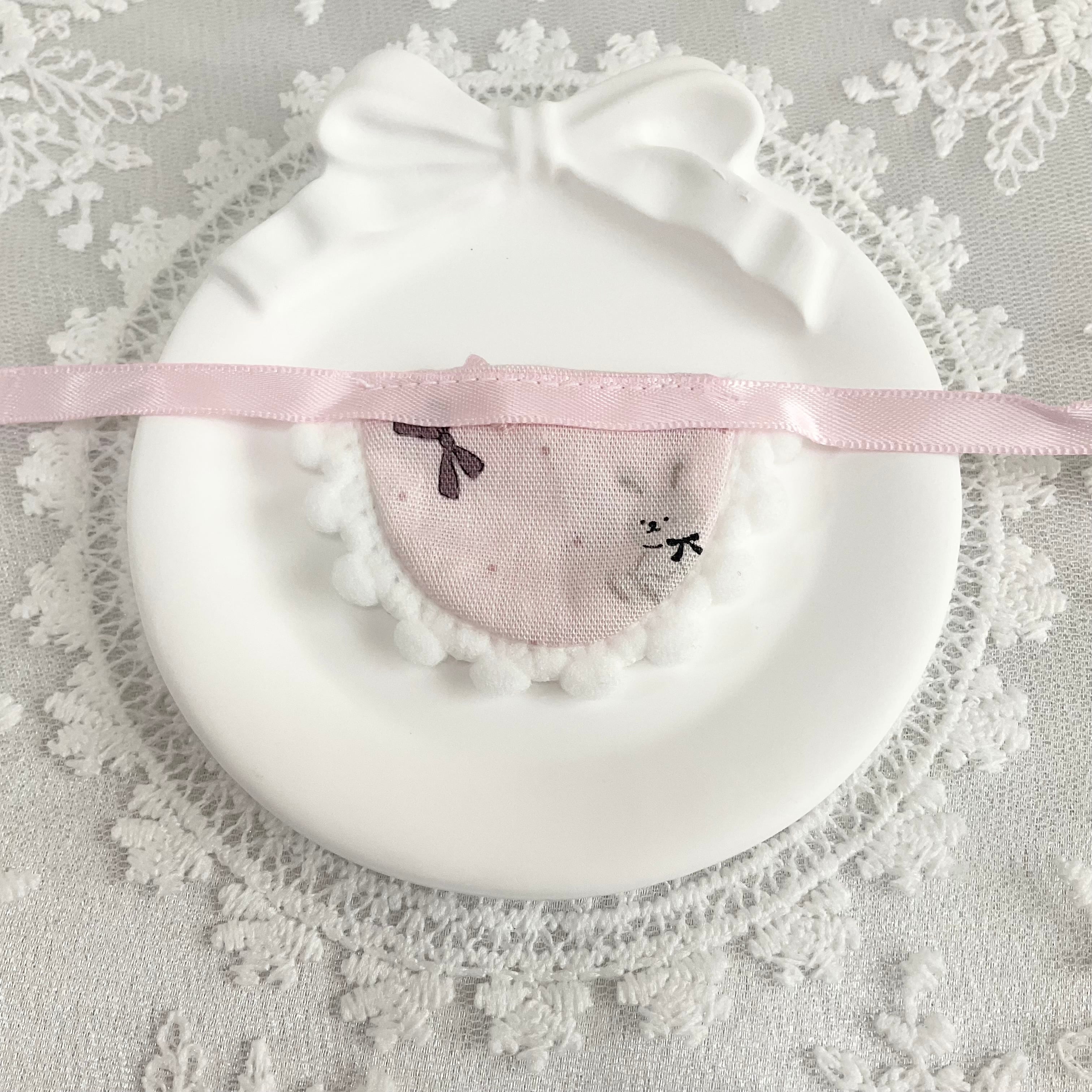ぬいぐるみ用スタイ うさぎさん パール風ハートビーズ付きリボン ピンク