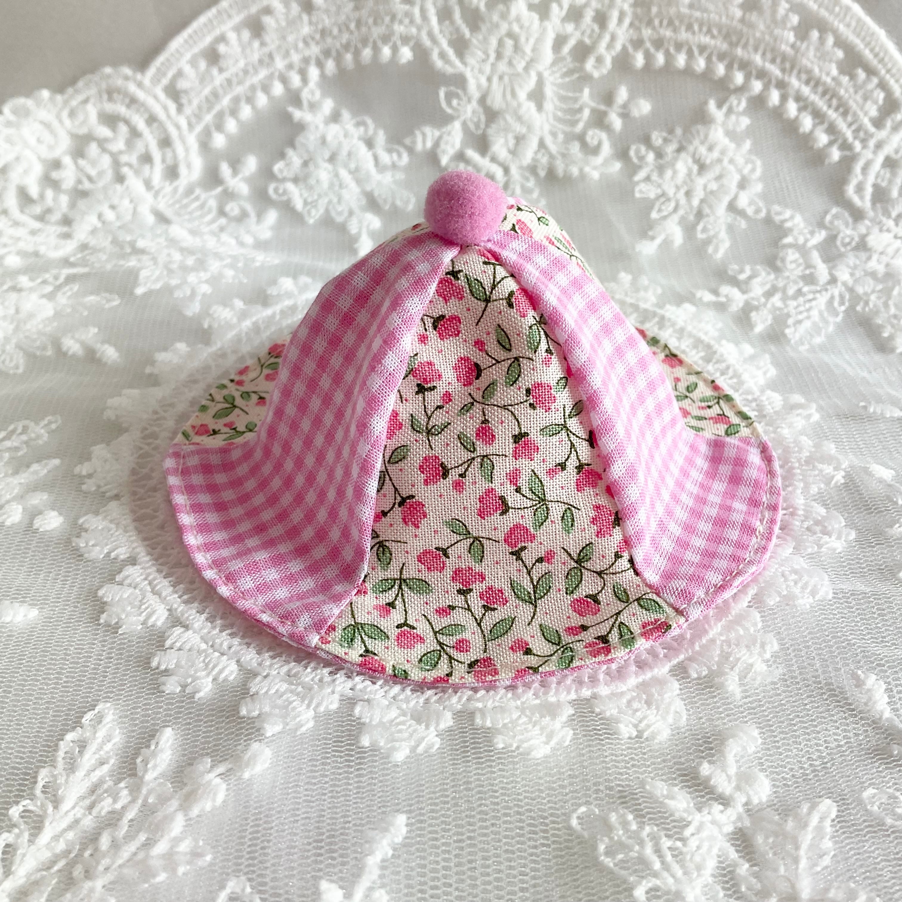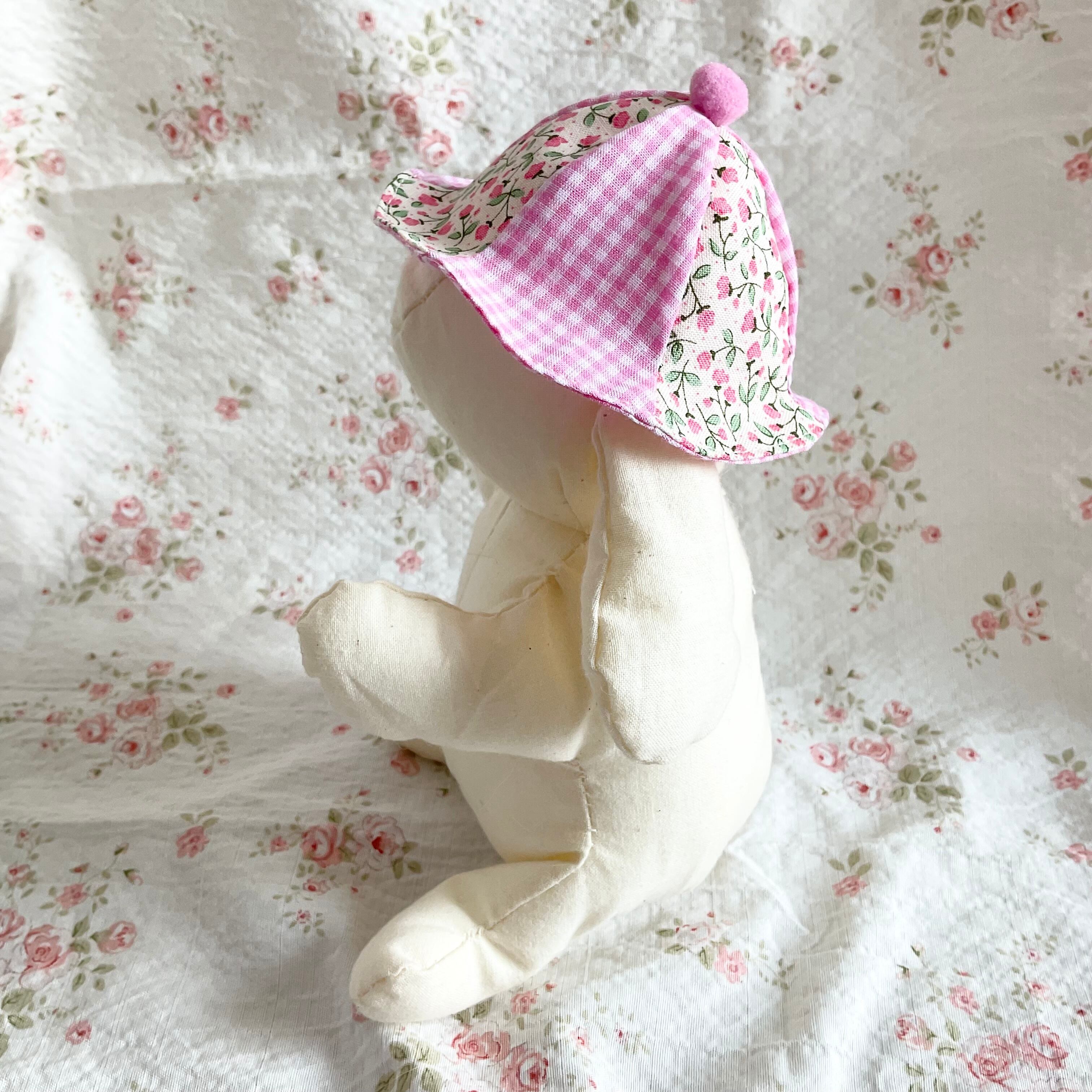 【再販】ぬいぐるみ用ぼうし ぽんぽん付 ひだまりフラワーチェック