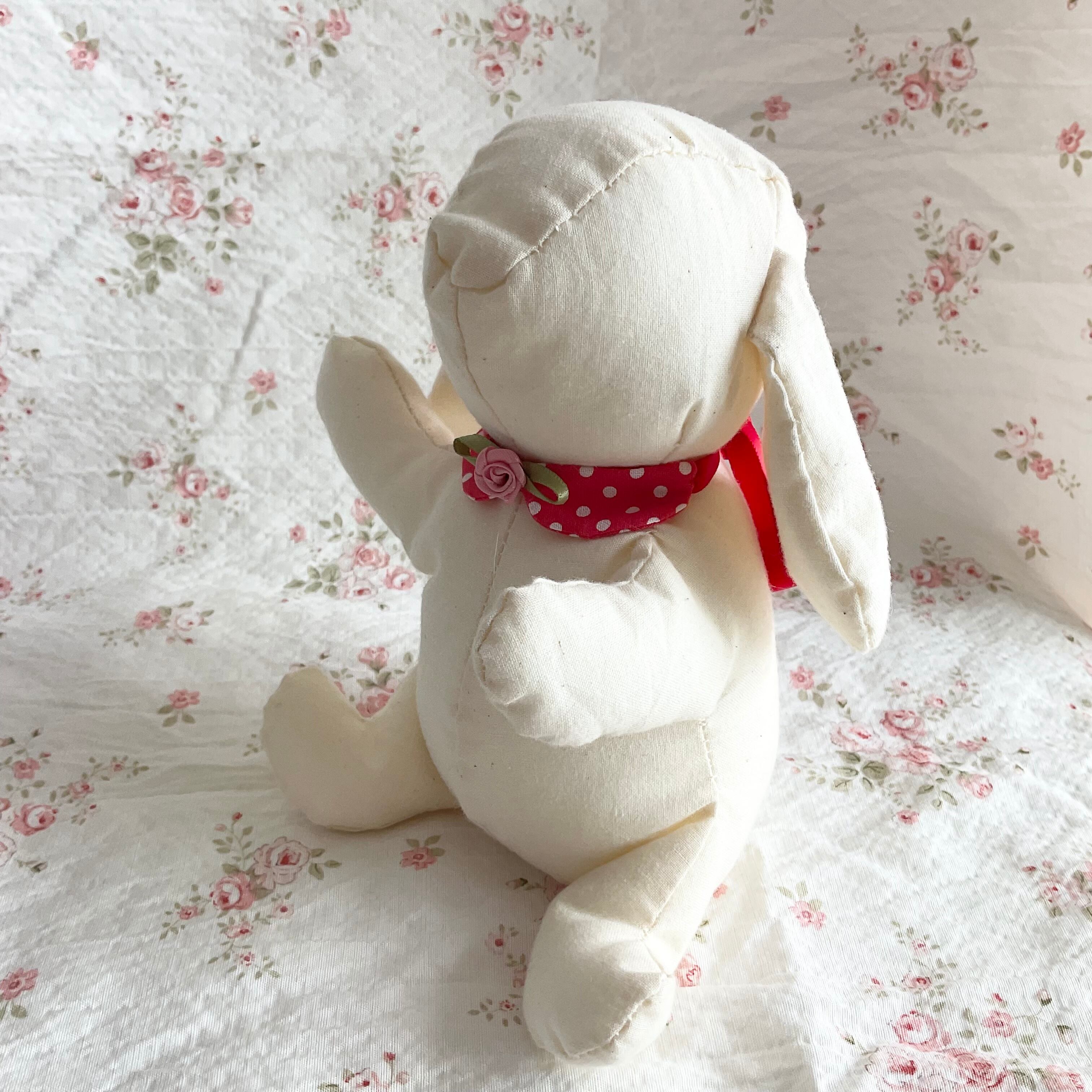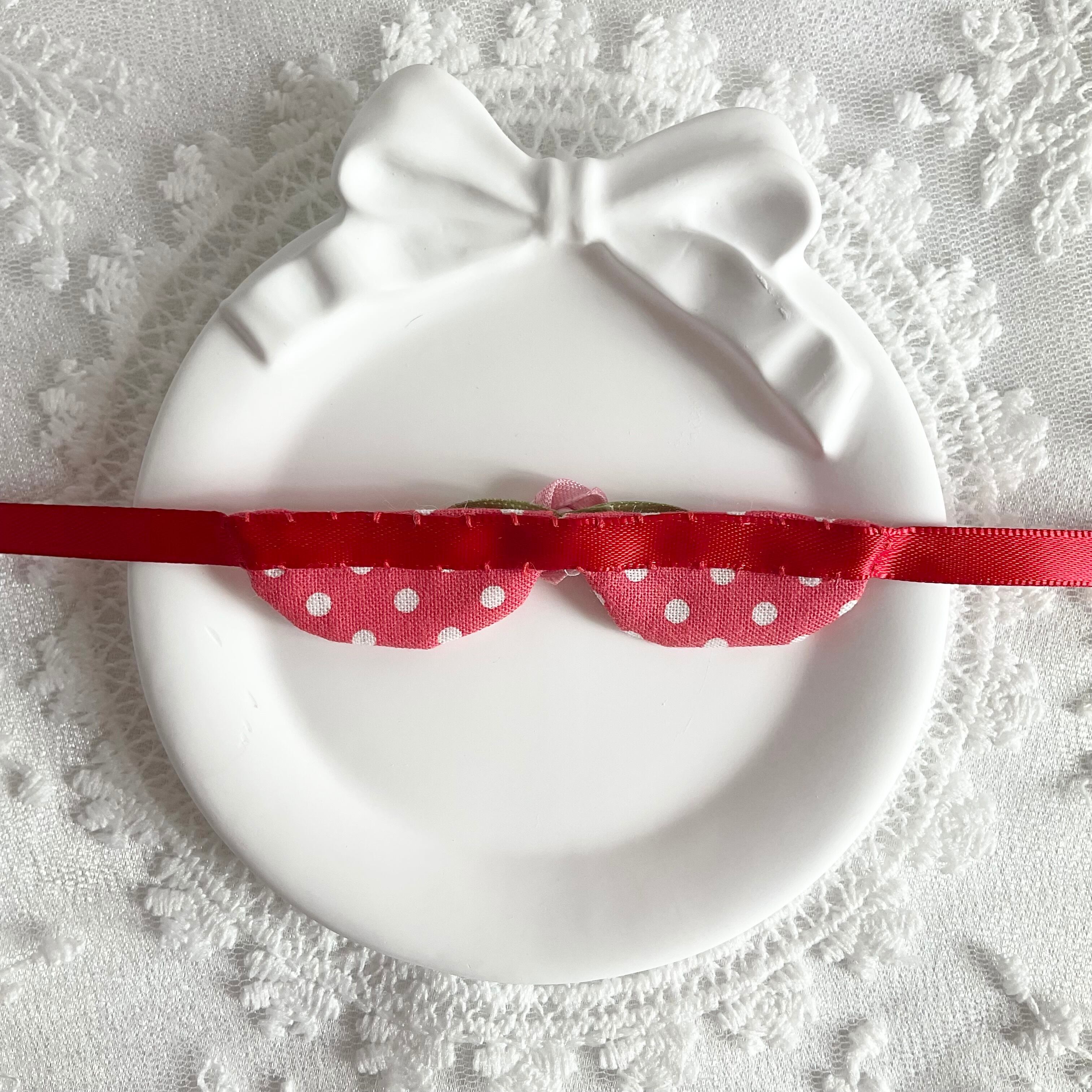 ぬいぐるみ用つけ襟 レッドドット柄 くすみピンクの薔薇