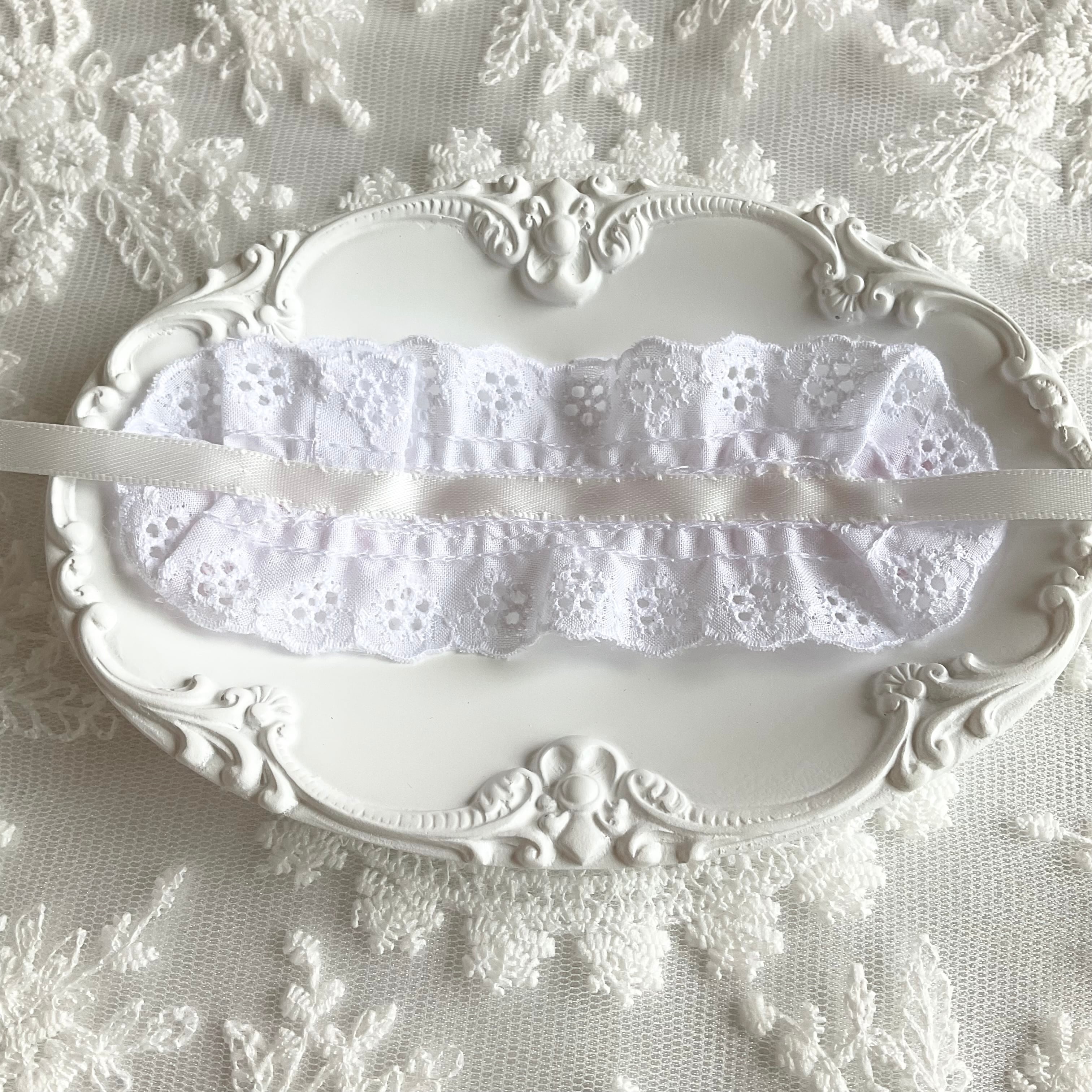 中央には繊細で上品なレースをあしらい、やわらかな立体感をプラス。